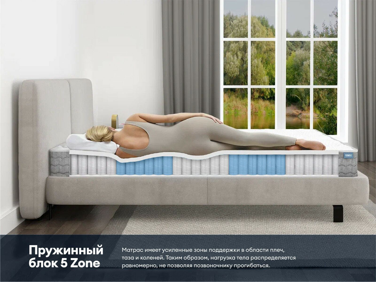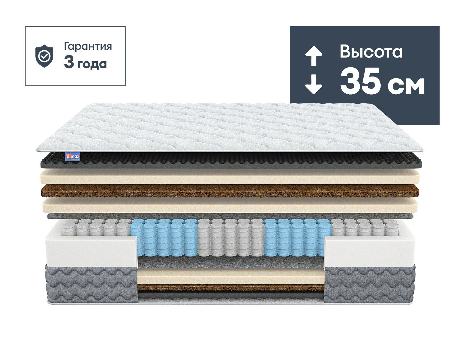 Димакс Биг Медиум — матрас с многослойной системой поддержки, которая объединяет массажные технологии, зональную ортопедию и адаптивный комфорт. Высокая конструкция толщиной 35 см гарантирует правильное распределение нагрузки и безупречный комфорт на протяжении всего сна.