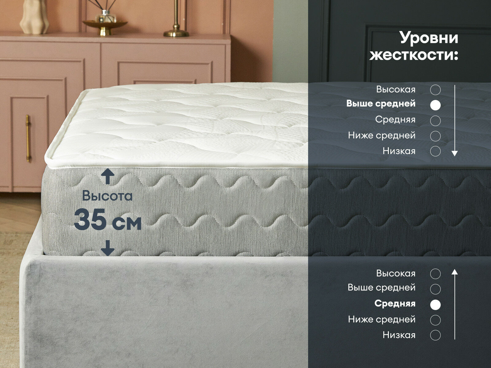 Многослойная система матраса адаптируется под ваш вес и позу сна, сочетая массажный эффект, ортопедическую жесткость и премиальный комфорт.