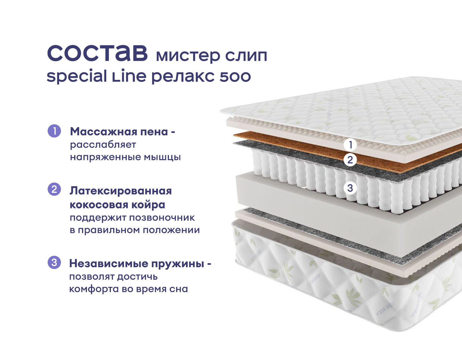 Массажный матрас с зональной поддержкой. Это практичная и удобная модель для тех, кто хочет сочетать комфортный сон с расслабляющим массажным эффектом. Разная жёсткость сторон и инновационные наполнители делают матрас универсальным выбором для большинства пользователей. Получите комфортный сон с массажным воздействием и продуманной поддержкой.
