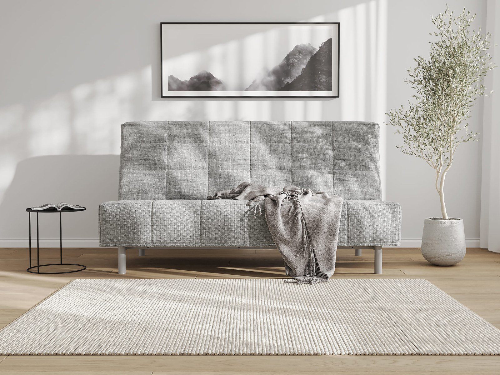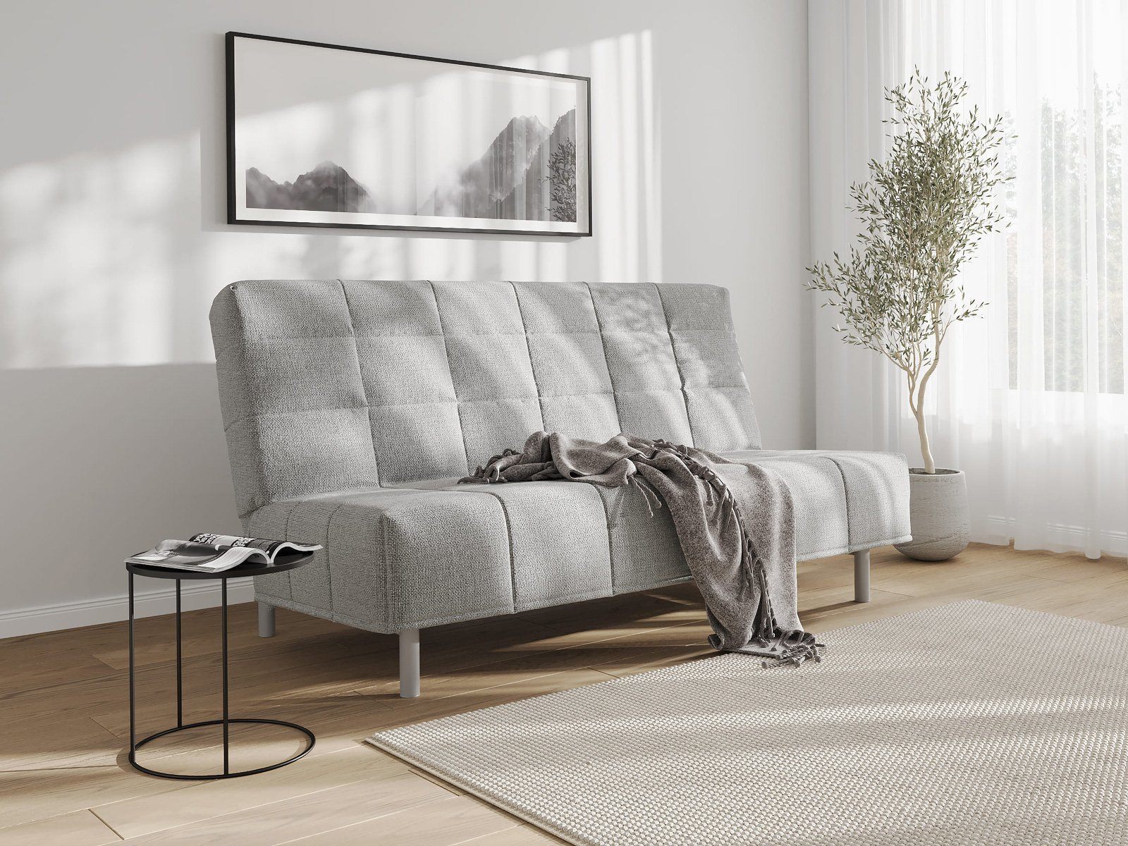 Диван для сна и отдыха в современном стиле с механизмом трансформации «клик-кляк». Основа дивана - металлическое основание с ламелями и анатомическим матрасом с независимым пружинным блоком. Благодаря съемному чехлу с объемной стежкой в форме квадратов, диван органично впишется в современные интерьеры в стиле минимализм. Благодаря отсутствию подлокотников у дивана минимальные габариты как в сложенном, так и разложенном виде.