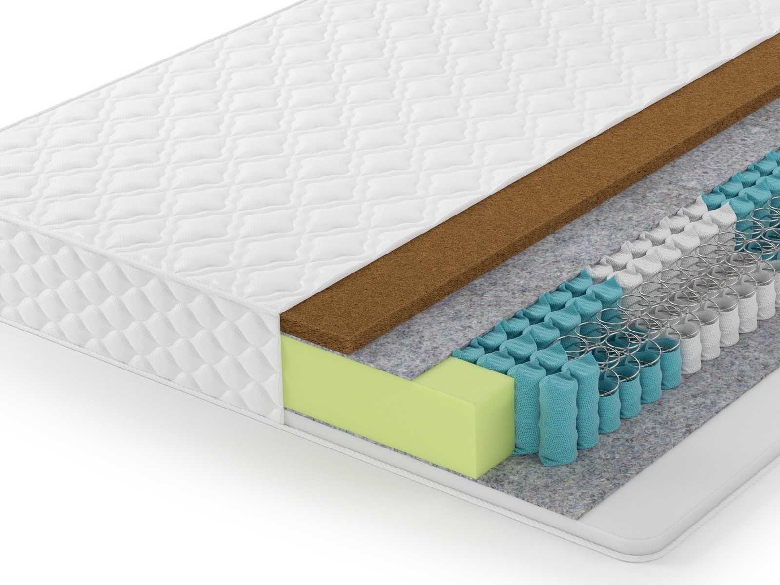 Одна сторона модели высокой жесткости, за счет использования кокосовой койры — природный материал, представляющий собой волокна ореха кокосовой пальмы, пропитанный составом из натурального латекса. Прочный и долговечный материал, который хорошо пропускает воздух и обладает антибактериальными и гапоаллергенными свойствами.