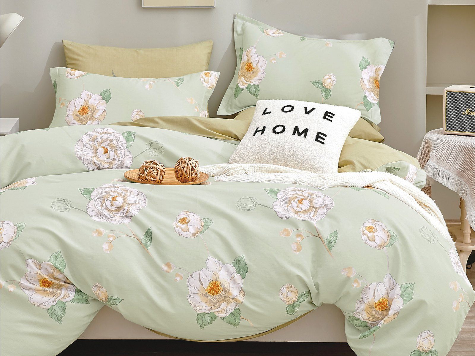 Дизайн Unida - олицетворение женского начала. Пастельная успокаивающая зелень фона подчеркивает благородство и чистоту белых роз. Каждый раз засыпая и пробуждаясь, вы будете ощущать умиротворяющую ауру этого по истине чарующего дизайна. В состав постельного белья входит 100% хлопок, который отлично пропускает воздух, хорошо впитывает влагу, обладает высокой износостойкостью и прекрасно подходит для людей с чувствительной кожей. За счет сатинового переплетения нитей ткань обладает нежными переливами, красота которых сравнима с шелковым блеском.