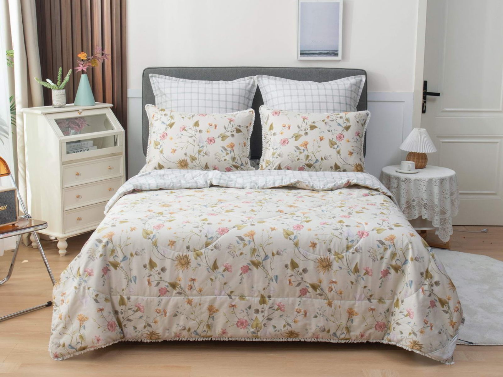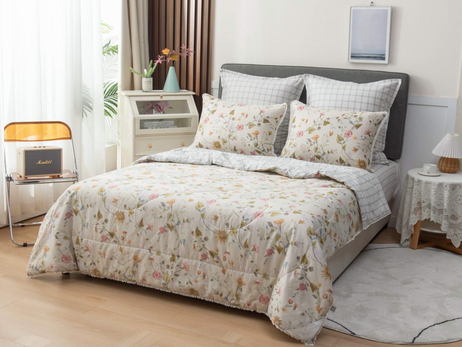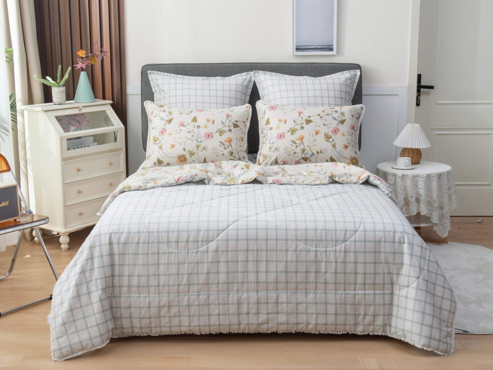 В комплекты комфортеров с одеялом Бернадетт входят наволочки, простыня и легкое всесезонное одеяло. Оцените это современное и очень удобное решение, которое идеально подходит тем, кто не любит возиться с пододеяльниками.