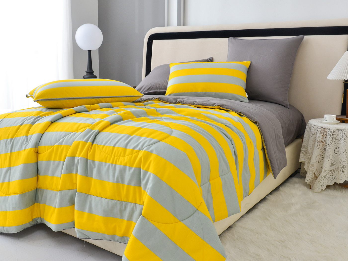 Особенность: двусторонняя модель, наволочки и одеяла декорированы кантом.