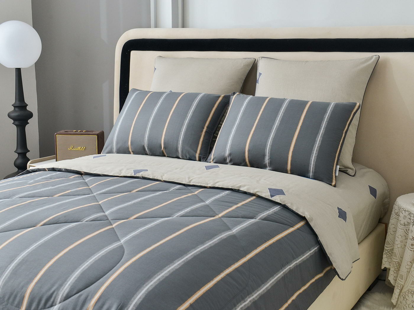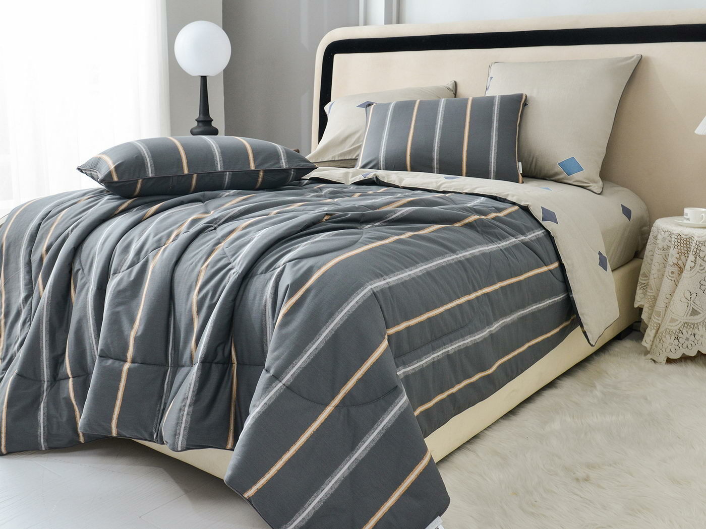 Особенность: двусторонняя модель, наволочки и одеяла декорированы кантом.