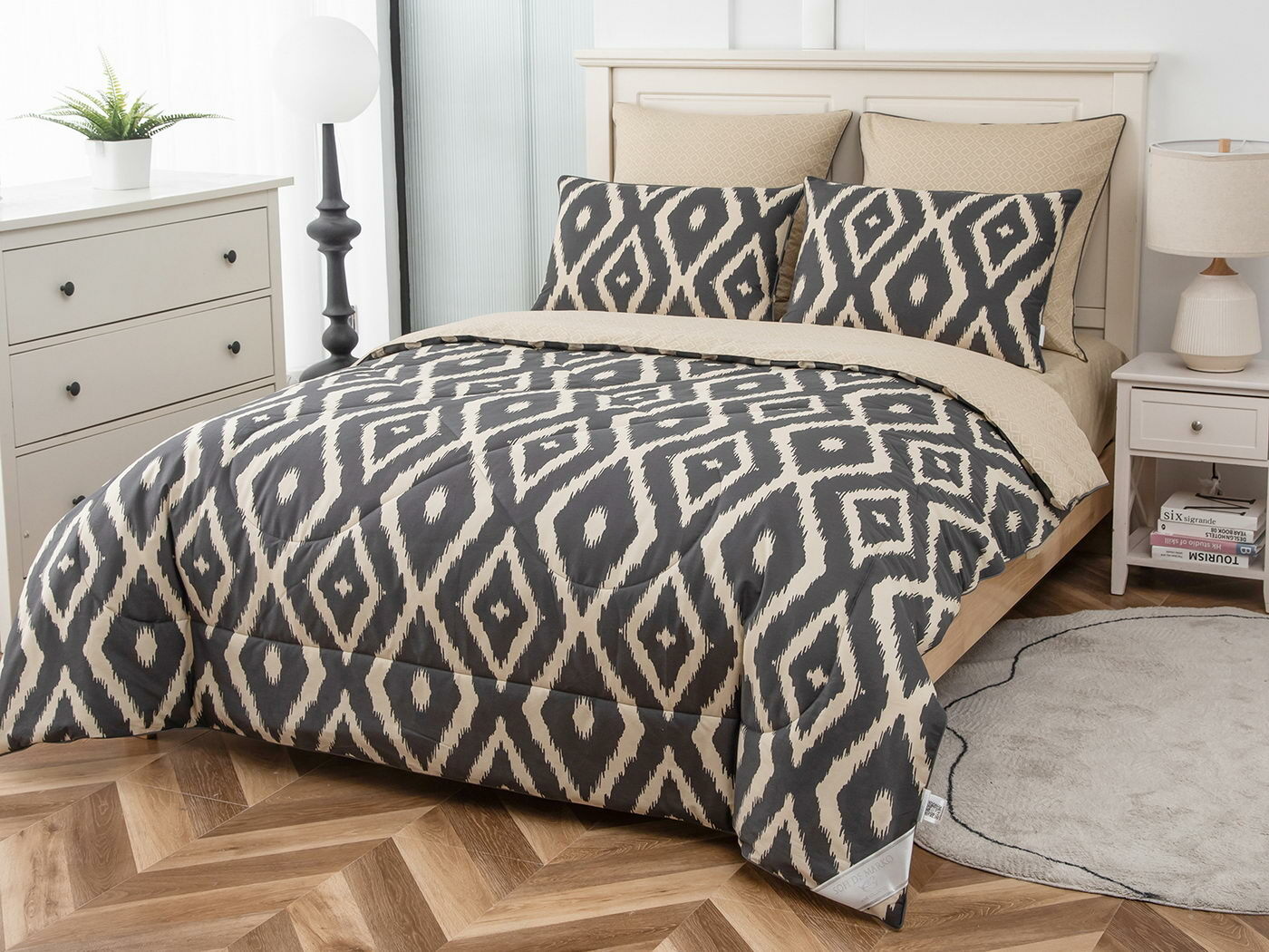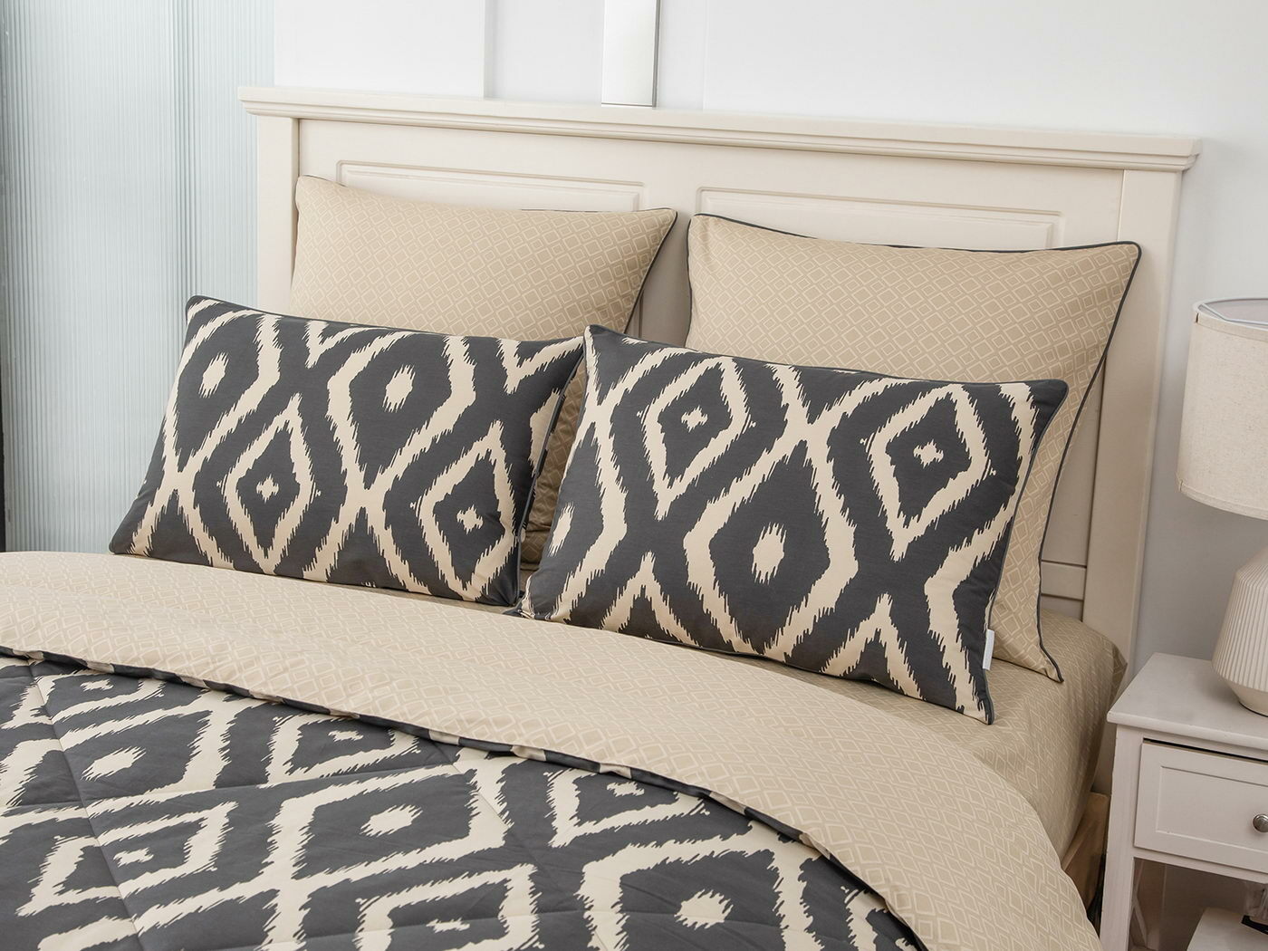 Особенность: двусторонняя модель, наволочки и одеяла декорированы кантом.