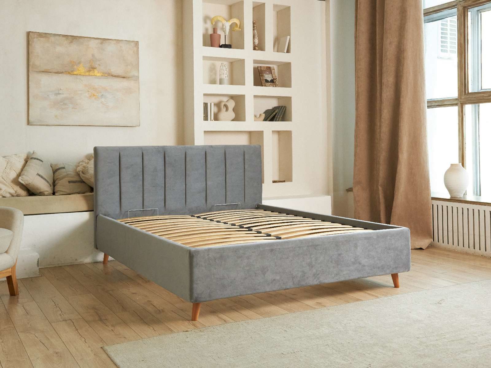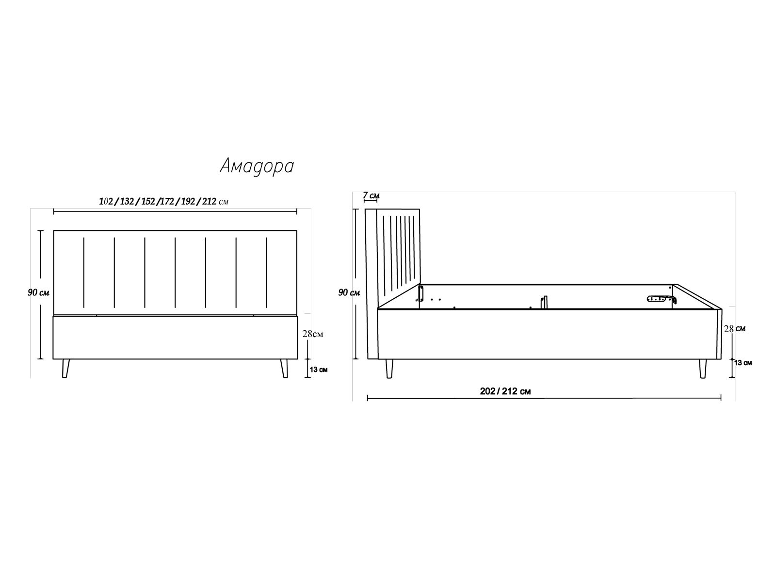 Кровать Амадора — превосходный выбор, который подарит вашей спальне легкость и элегантность. Прямое изголовье кровати украшено вертикальными утяжками, которые добавляют образу лаконичности.