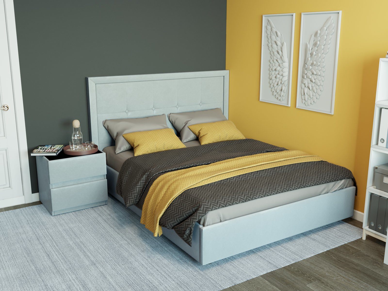 В комплектации с подъемным механизмом кровать имеет вместительный бельевой короб с двумя отделениями.