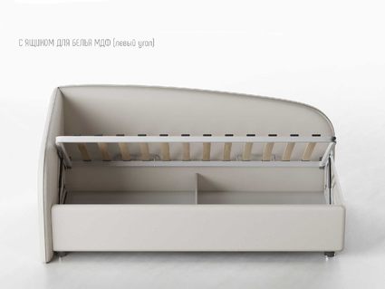 Одним движением руки Вы можете превратить кровать в диван! Закажите вместе с кроватью декоративный чехол на матрас к кровати Amelia из мебельной ткани (чехол приобретается отдельно, стоимость уточняйте у наших менеджеров), уберите постельное бельё в просторный ящик и вуаля — перед вами удобный и компактный угловой диван (особенно актуально для детских комнат или гостиных).
