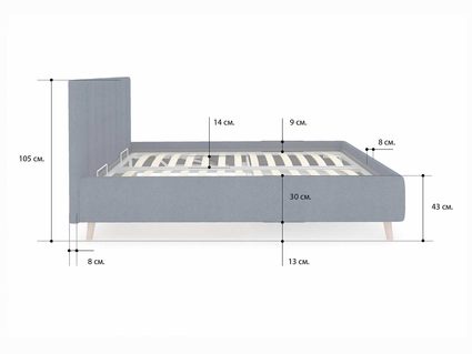 Кровать комплектуется металлическим основанием (без опор), которое имеет 13 рядов встроенных березовых ламелий на каждое спальное место, обеспечивая равномерное распределение нагрузки.