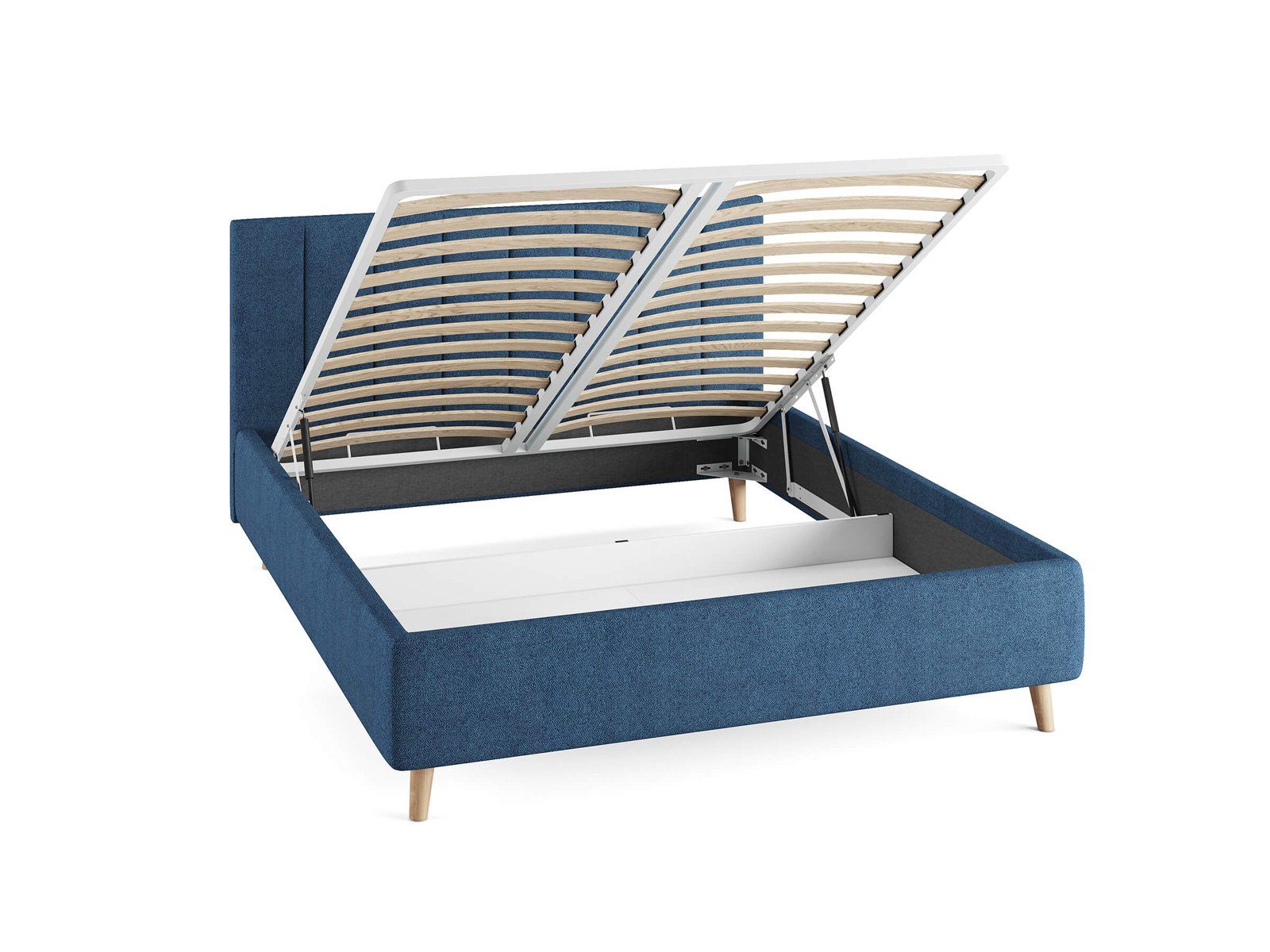 Кровать комплектуется металлическим основанием и подъемным механизмом со вместительным бельевым ящиком. Дно бельевого ящика легко сдвигается для обеспечения уборки под кроватью.