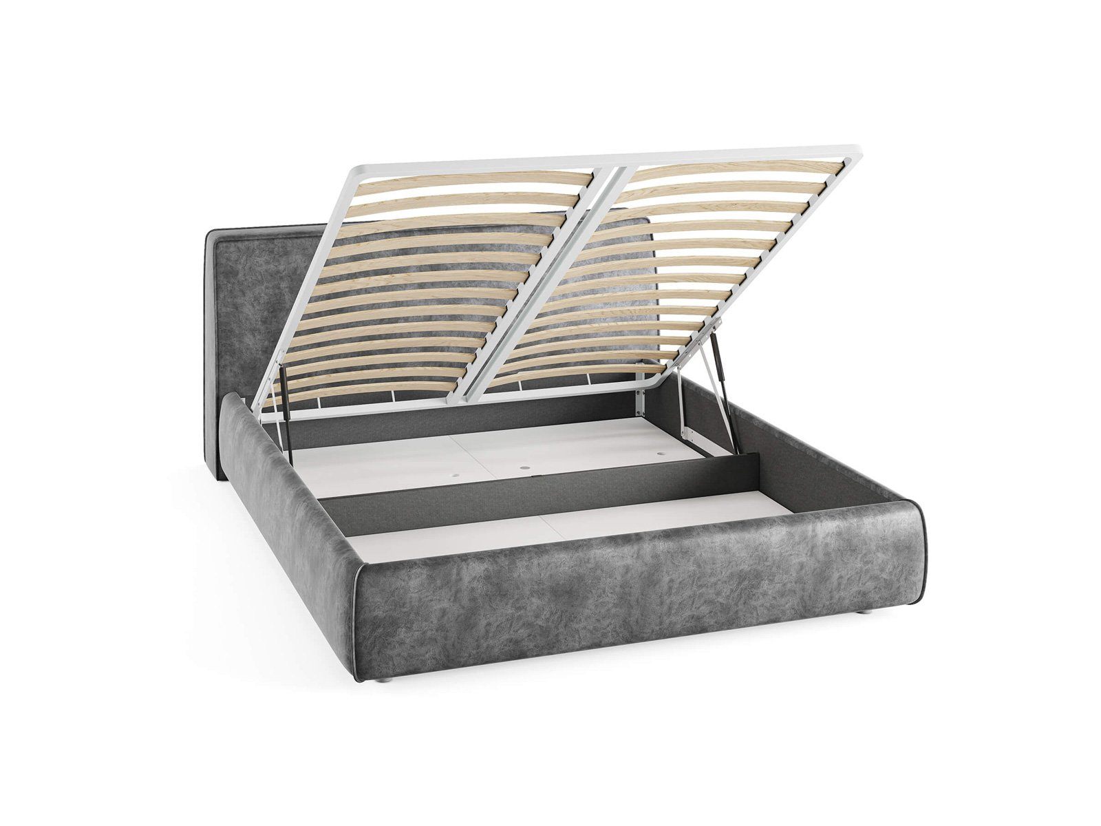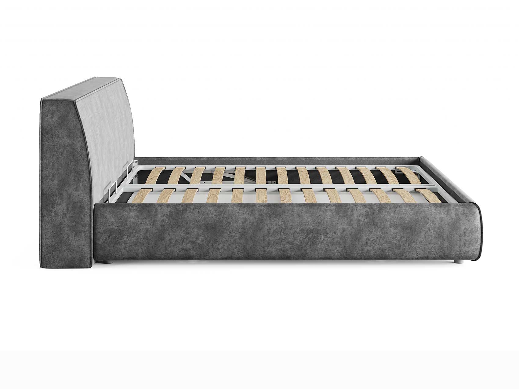 Кровать комплектуется металлическим основанием и подъемным механизмом со вместительным бельевым ящиком. Дно бельевого ящика легко сдвигается для обеспечения уборки под кроватью.