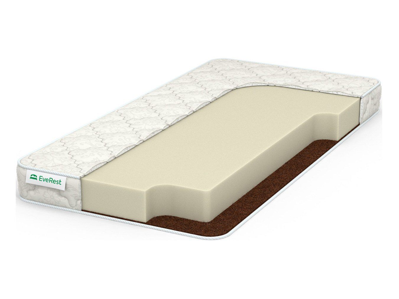 Вторым слоем расположена койра кокоса. Тонкая 1 см плита обеспечивает выраженную жёсткость и плотность. Благодаря высокой эластичности слой великолепно удерживает спину, дублируя её естественные линии. По этой причине натуральная койра кокоса относится к ортопедическим материалам, которые правильно разгружают и расслабляют позвоночник на протяжении всего отдыха.