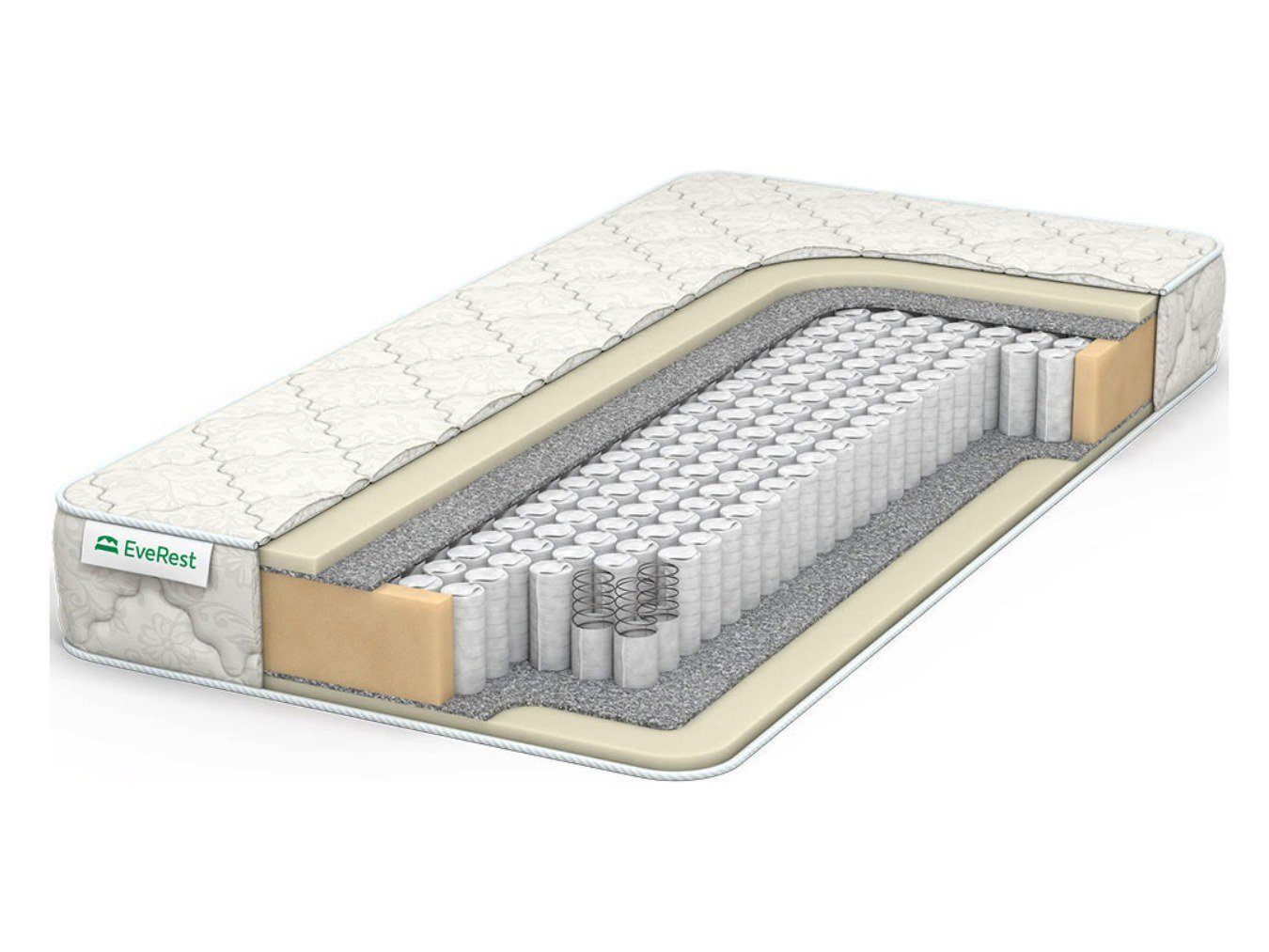Слоями комфорта в модели выступают 1,5 см плиты ППУ, расположенные по сторонам от блока пружин. Этот долговечный искусственный материал создавался с оглядкой на натуральный латекс, поэтому обладает весьма схожими качествами. Наполнитель обладает упругостью, умеренной мягкостью, хорошо восстанавливает форму и гипоаллергенен для человека.