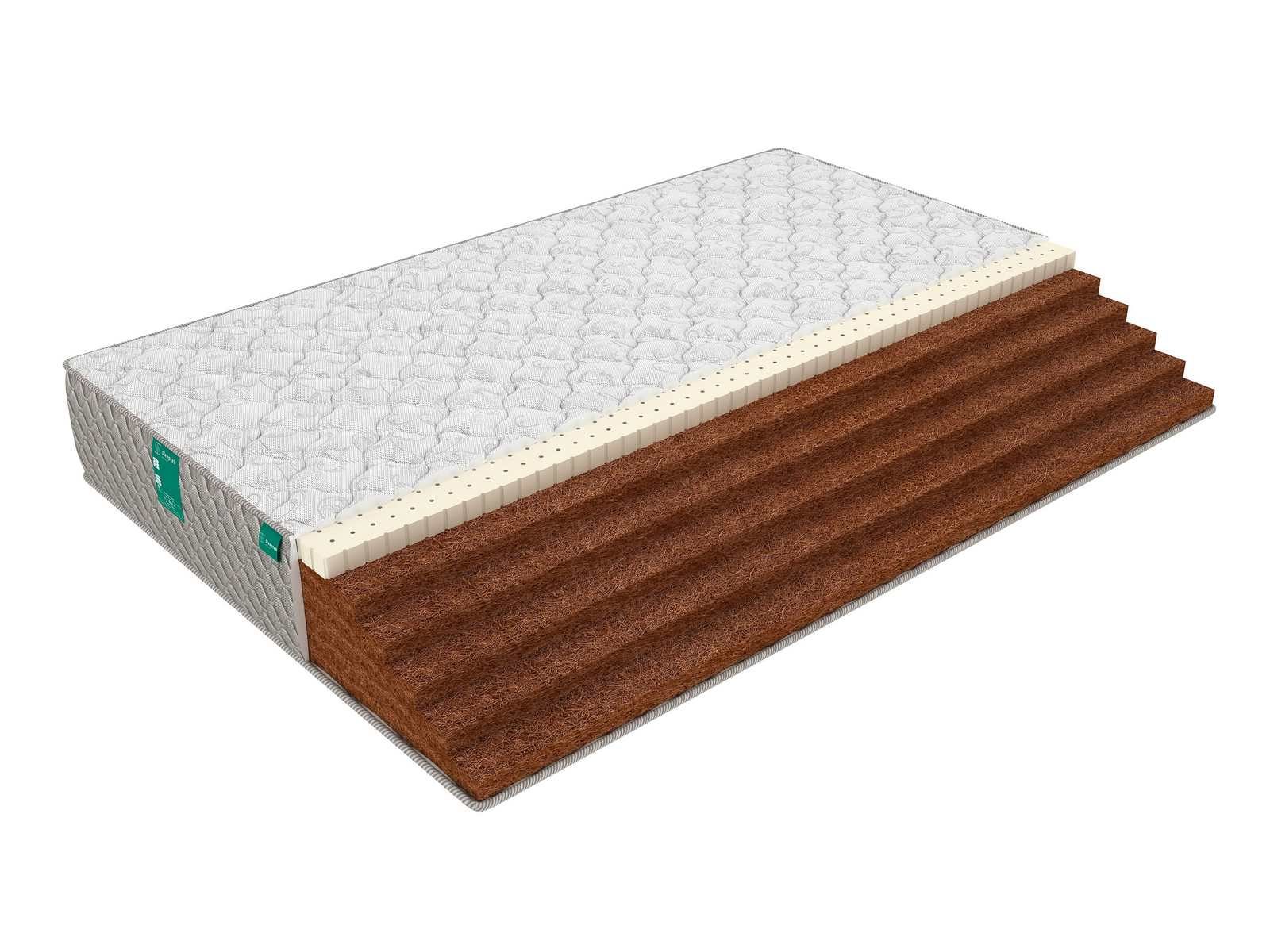 С одной стороны матрас представлен только койрой, эта сторона жесткая. Вторая сторона дополнительно проложена слоем натурального латекса и имеет умеренную мягкость. Латекс благодаря своей упругости и эластичности помогает быстро расслабиться и снять напряжение