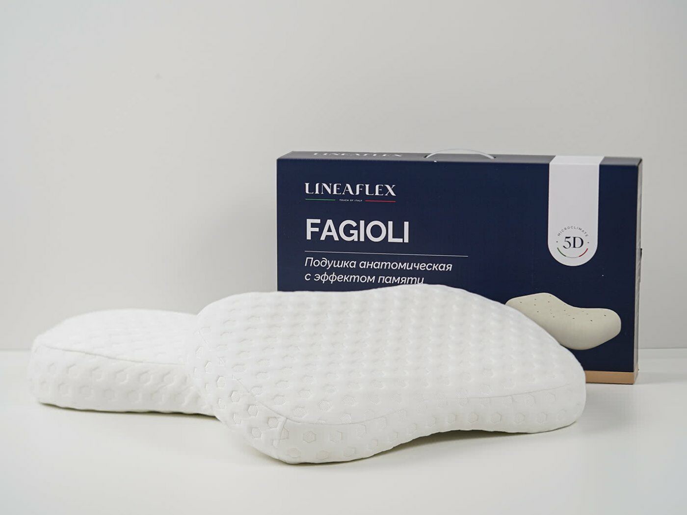Подушка Fagioli сочетает в себе эргономичную форму и премиальную пену с эффектом памяти. Точечно, без ответного давления, подстраиваются под голову и шею спящего, даря максимальное расслабление.