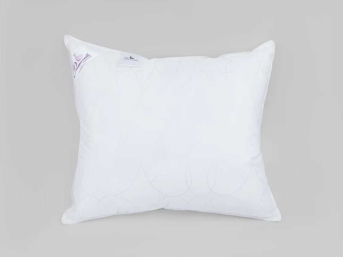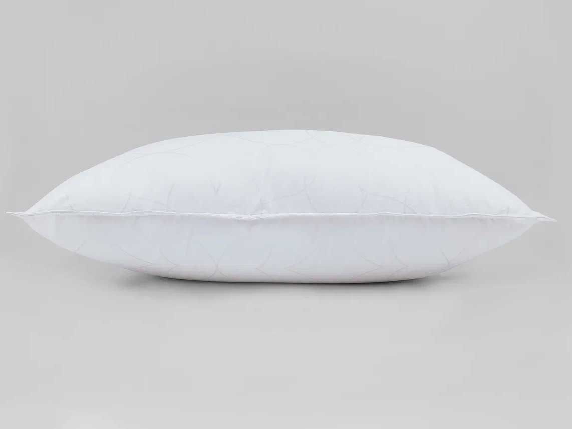 Комбинация ткани и наполнителя прекрасно пропускает воздух и вентилируется, при этом надежно удерживается внутри не допуская миграции пуха наружу. Стильный белый цвет и утонченный вензельный дизайн придают подушке изысканный вид, а двойная отстрочка и кант наделяют атрибутами Premium сегмента.