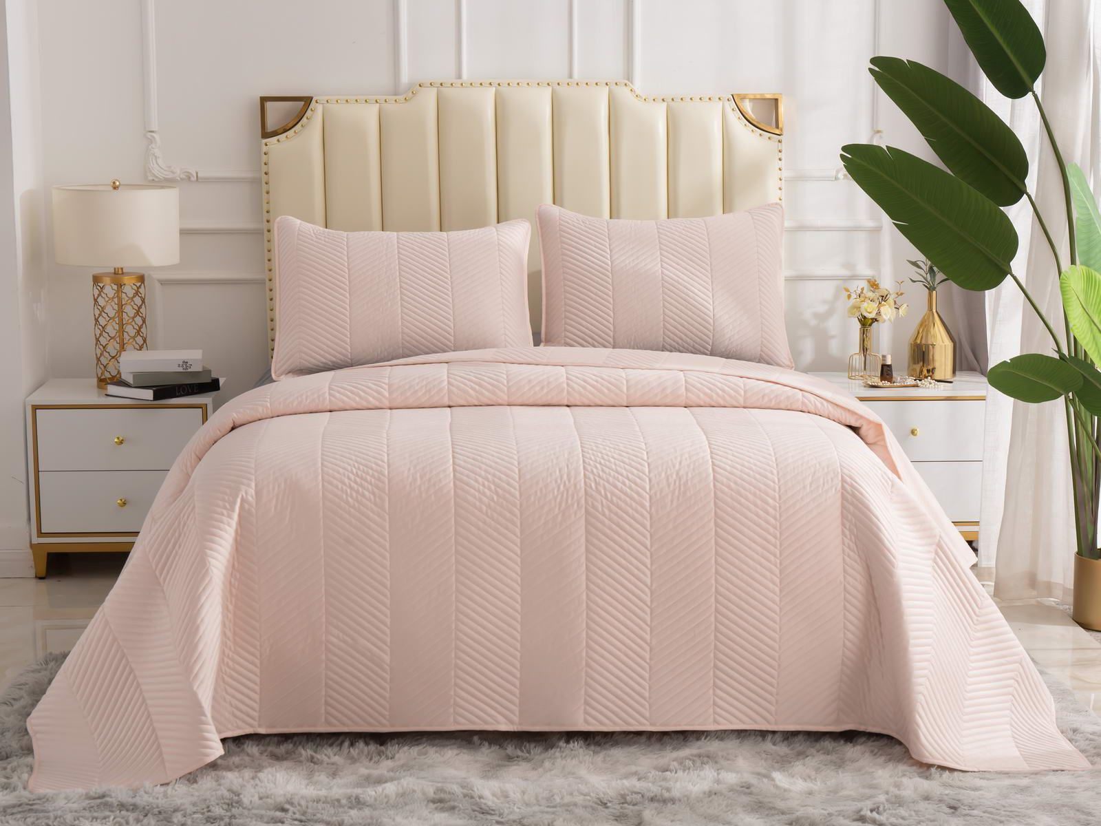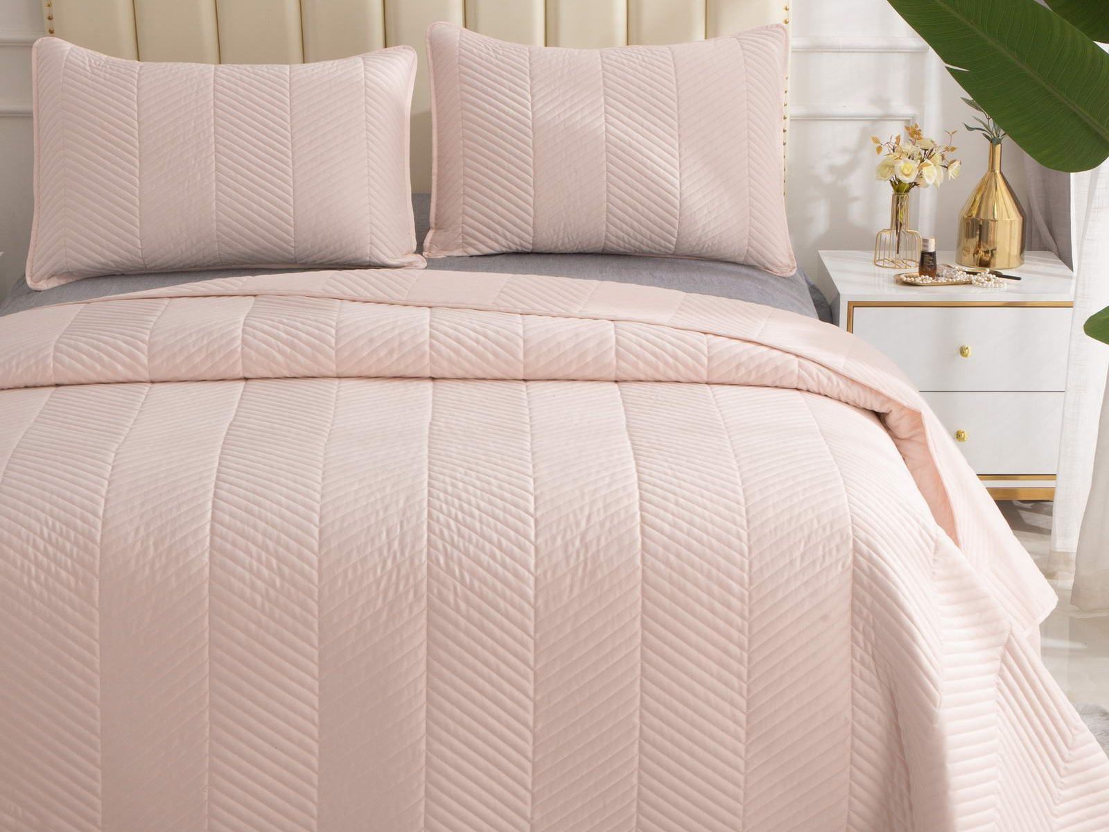 Стёганое дышащее покрывало Адонис на 70% состоит из хлопка и на 30% из вискозы. Ткань изделия гладкая и приятная на ощупь. Декоративный кант и ритмичный «елочный» рисунок, выступающий над поверхностью, придают покрывалу игривый утонченный вид.