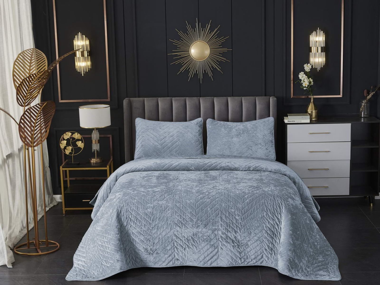 Покрывала Фернанд выглядят как будто сошли с картин, изображающих королевские покои. Бархатную ткань начали изготавливать еще в Средние века, её использовали в оформлении дворцов и изготавливали плащи и головные уборы для знати. Теперь и вы можете прикоснуться к этой роскоши! Бархатная текстура приятная на ощупь, а из-за особого плетения ткани, игра света на ней выглядит благородно. Поэтому покрывало Фернанд создаст необычайно уютную атмосферу в вашей спальне. Цветовая гамма разнообразна и включает восемь благородных оттенков: капучино, бежевый, изумруд, горчичный, терракотовый, пепельная роза, серый, стоун. За покрывалом Фернанд легко ухаживать: стирка при температуре 30 градусов, вручную или в машинке. Важно хорошо просушить изделие! При правильном уходе вещь прослужит долгие годы не потеряв форму и цвет.